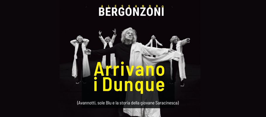 Dopo il lunghissimo tour di “Trascendi e Sali” Alessandro Bergonzoni torna in teatro con il suo nuovo spettacolo “Arrivano i Dunque (Avannotti, sole Blu e la storia della giovane Saracinesca)”. “Un'asta dei pensieri dove cerco il miglior (s)offerente per mettere all'incanto il verso delle cose: magari d'uccello o di poeta”. Un luogo scenico, multifunzionale, dove proseguire la sua ricerca artistica nei territori che in questi anni lo hanno visto partecipare attivamente in prima persona ad avvenimenti sia artistici che sociali applicando fattivamente la“…congiungivite dove varco il fraintendere, fino all’unità dismisura, tra arte e sorte, fiamminghi e piromani, van Gogh e Bangkok, bene e Mahler, sangue fuori mano e stigmate, stigmate e astigmatici, Dalì fino Allah.” E se in questo nuovo allestimento vogliamo trovare un'altra cifra bergonzoniana, insieme ovviamente alla scrittura comica, dovremo cercarla nella “Crealtà”, altra sua invenzione, che esplicita, in un pensiero che si fa neologismo, la vera tensione morale di questo artista unico: il tentativo di ricreare una realtà che non solo non ci basta più ma che possiamo/dobbiamo reinventare giorno per giorno alla ricerca di un futuro di pace assoluta e definitivamente più accogliente fino alle soglie di nuove percezioni e di altri significati. Quindi “Arrivano i Dunque” perché i tempi sono colmi e come si chiede Bergonzoni “Manca poco? Tanto é inutile? Non per niente tutto chiede!”